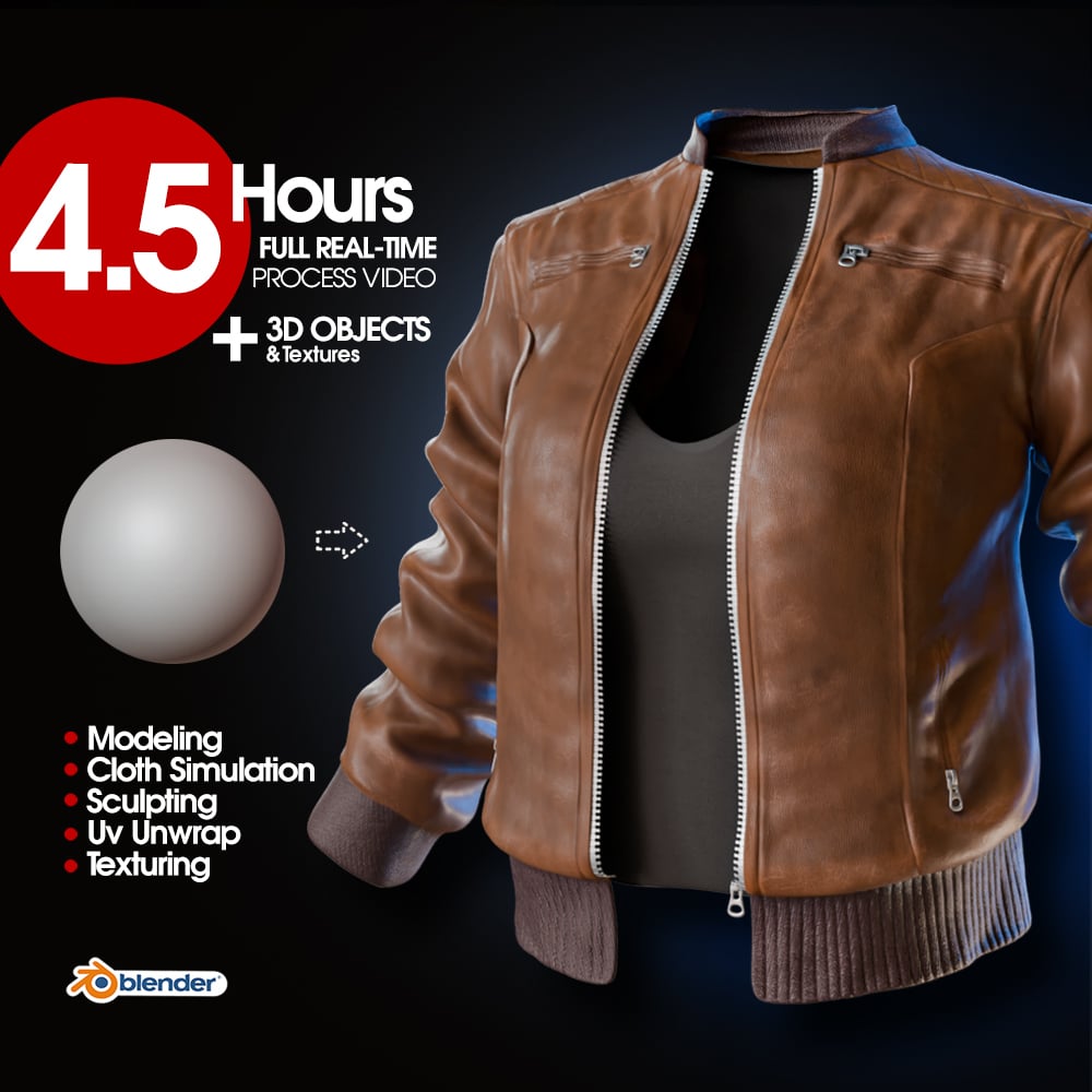 Leather Jacket & Top - Full 4.5 Hours Real-Time Process Video + 3D Objects & Textures (.FBX .OBJ. .BLEND)
